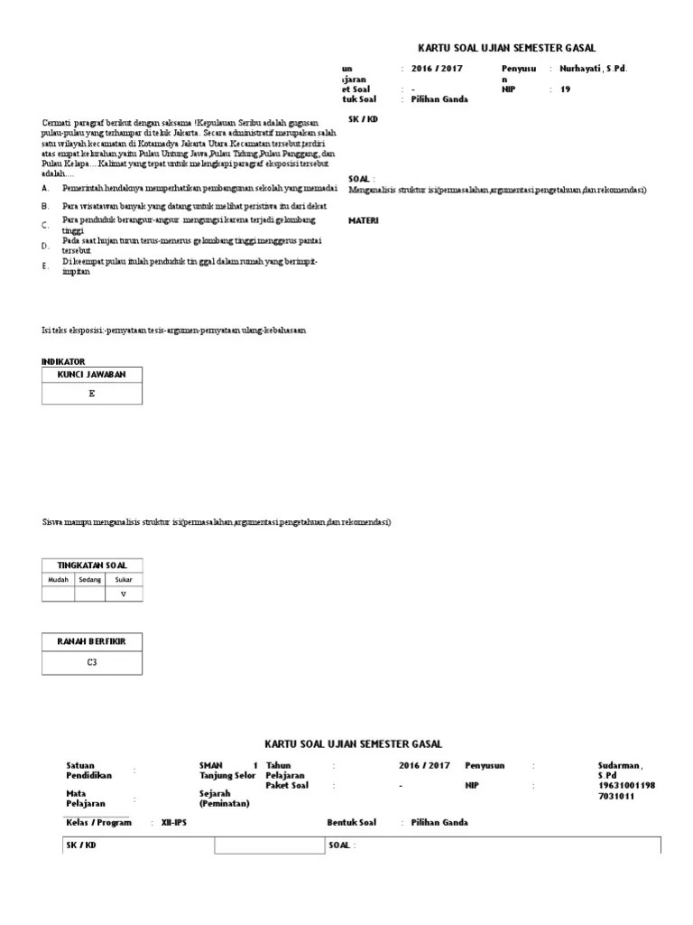 Kartu soal pilihan ganda bahasa indonesia sma ilmusosial id source: Misalkan kita akan mengembangkan soal level hots pada tingkatan sekolah dasar, untuk mata pelajaran bahasa indonesia. Soal uts bahasa inggris smp kelas viii kisi kisi kartu soal dan format. Pada unit ini, disajikan contoh kartu soal hots bentuk uraian pada kompetensi dasar: Jika jawaban lisan maupun contoh teks anekdot.